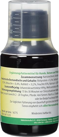 Cdvet Naturprodukte Calma 100 Ml Hund Katze Pferd Erganzungsfuttermittel Nervositat Stress Anspannung Emotionale Korperliche Belastbarkeit Unterstutzung Gemutsregulierend Amazon De Haustier