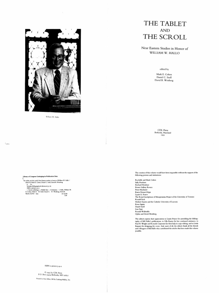 Cohen M Snell D Weisberg D The Tablet And The Scroll Near Eastern Studies In Honor Of William W Hallo Fs Hallo 1993 Archaeology Languages