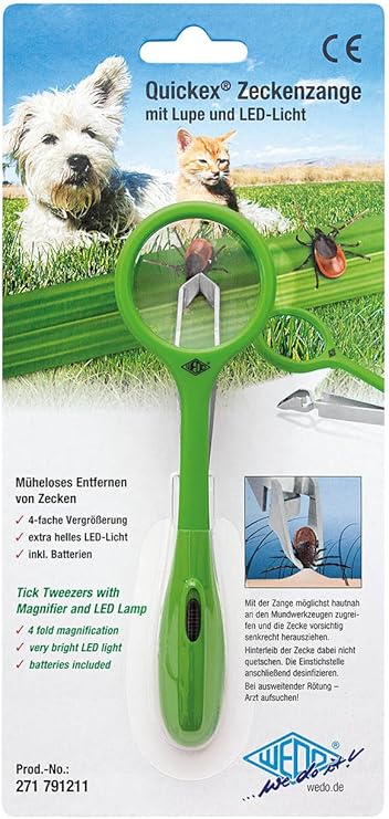 Wedo 271791211 Zeckenzange Quickex Mit Lupe Und Led Licht Metallgreifarm Grun Amazon De Haustier